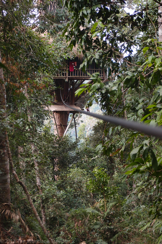 I stayed there the last three days on this Southeast Asia Trip. It is definitely the highlight of this trip so far. A limited number of people are allowed to live for a few days on tree houses for three days. Those tree houses are built up to 60m high on trees in the middle of the jungle. Only getting there requires a two hour ride on a pick-up truck and further hiking for more than two hours into the jungle. We were able to reach those tree houses through zip-lines, which is a lot of fun by itself.